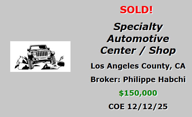 Latest Done Deals for Sunbelt Business Brokers of Pasadena